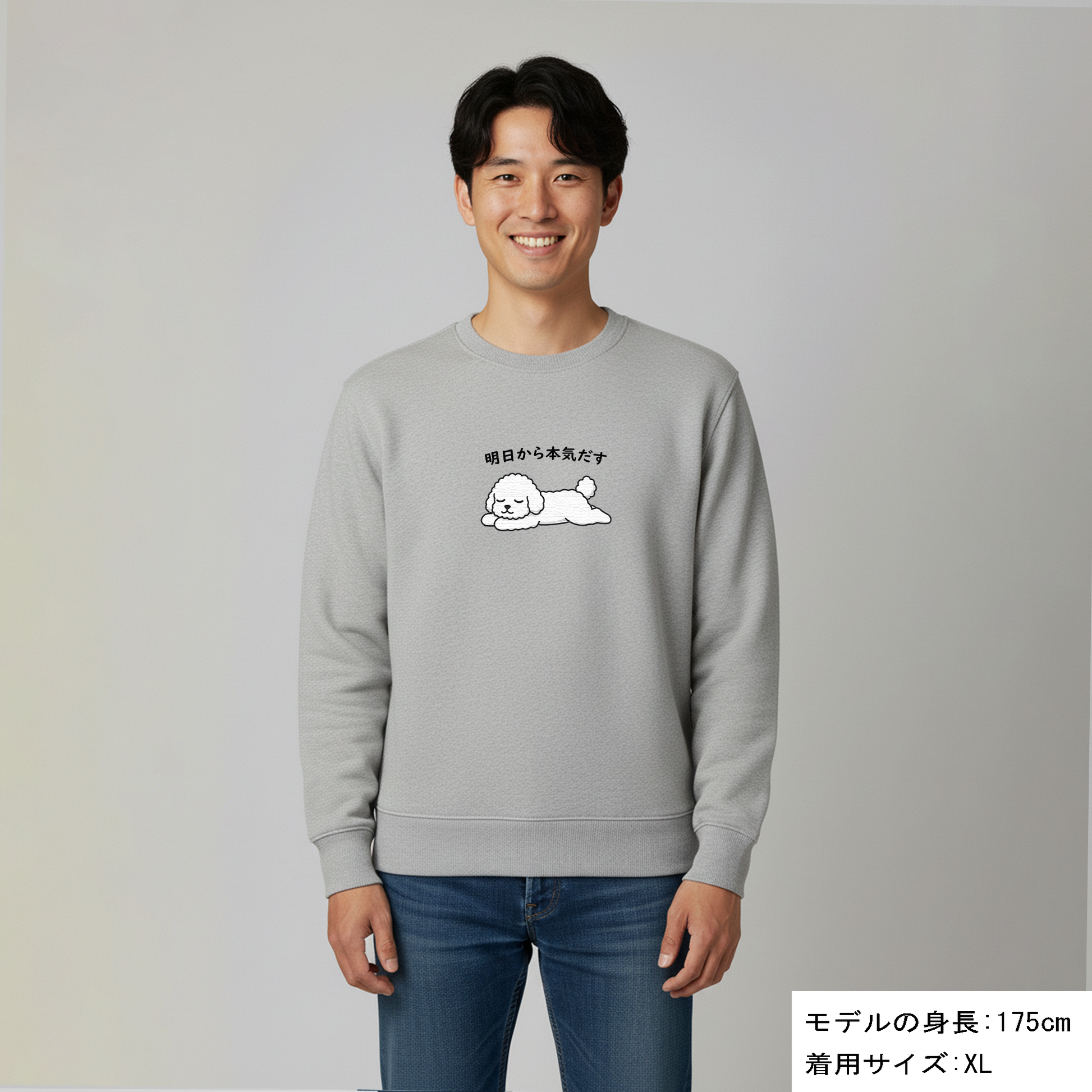 犬 トレーナー いぬ かわいい 犬イラストビション犬 明日から本気出す