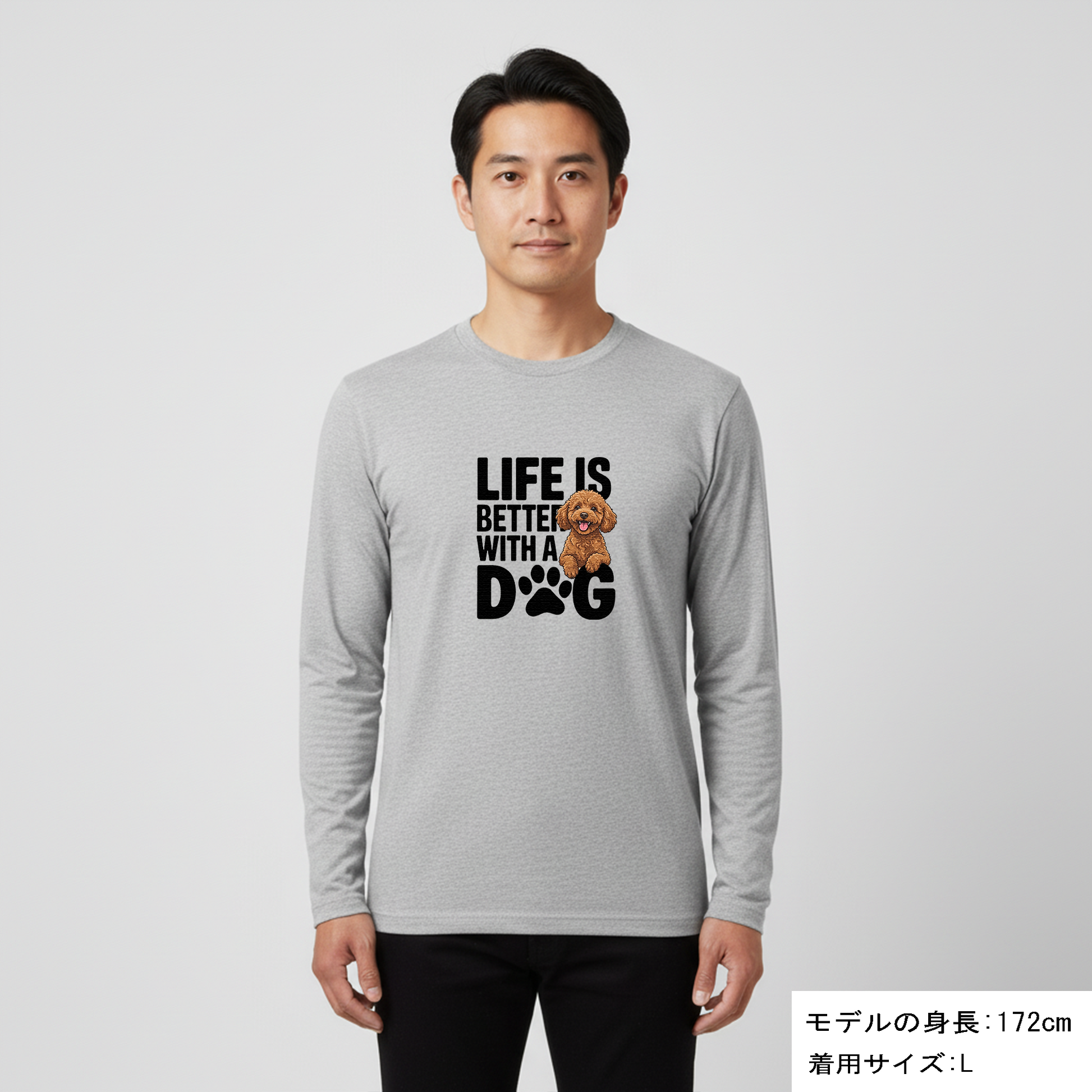 犬 ロン t 犬 長袖 t シャツ いぬ 犬イラスト プードル Life is better with a Poodle