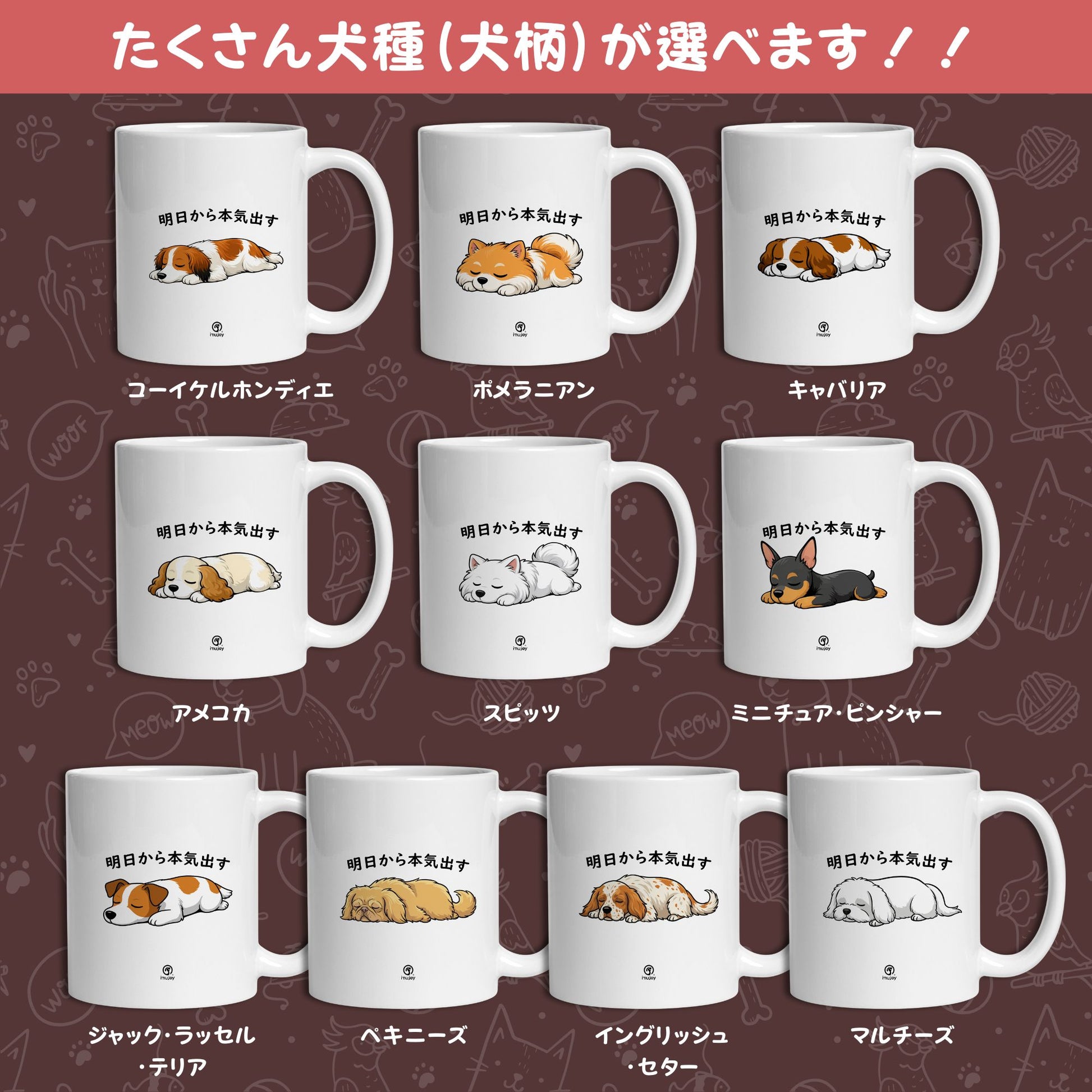【犬種選べる】マグカップ 犬イラスト 明日から本気だす |犬好きにおすすめの面白い猫グッズ プレゼントにも最適